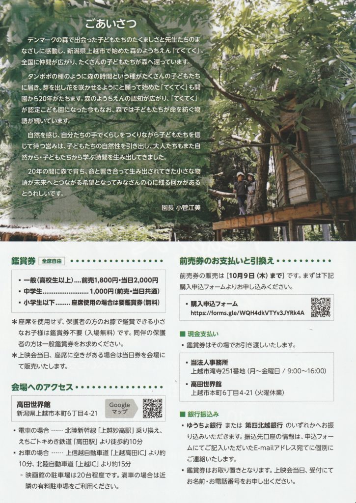 「さあ森へいこう」 森のこども園てくてく20周年特別企画上映会 10/11・13【更新日9/6】