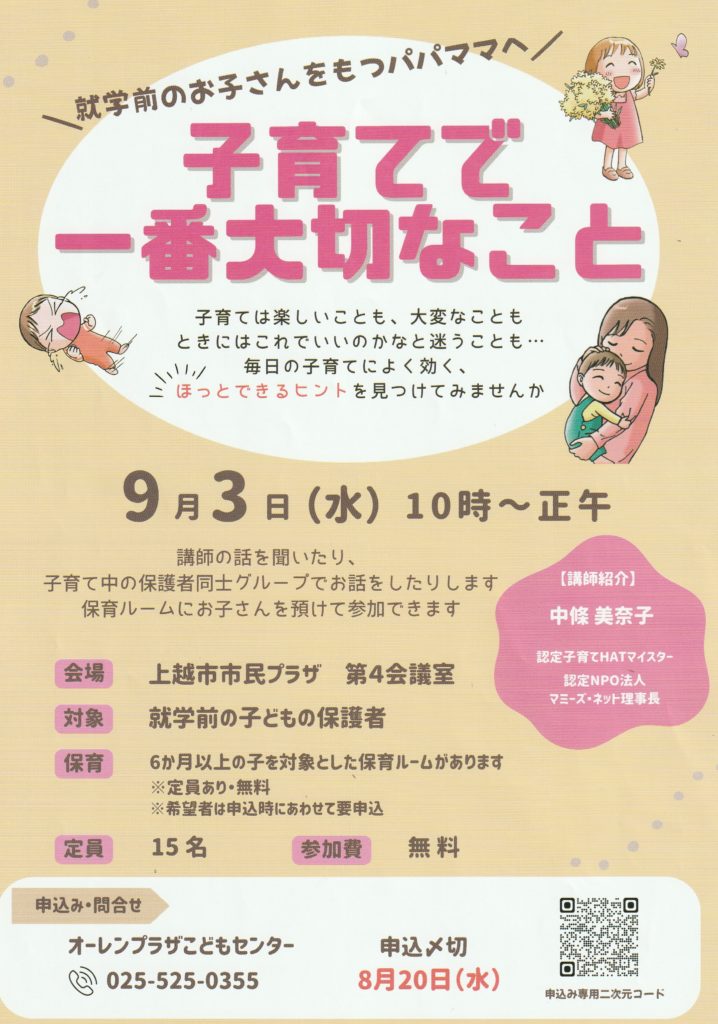 こどもセンター子育て応援講座 『子育てで一番大切なこと』9/3【更新日8/13】
