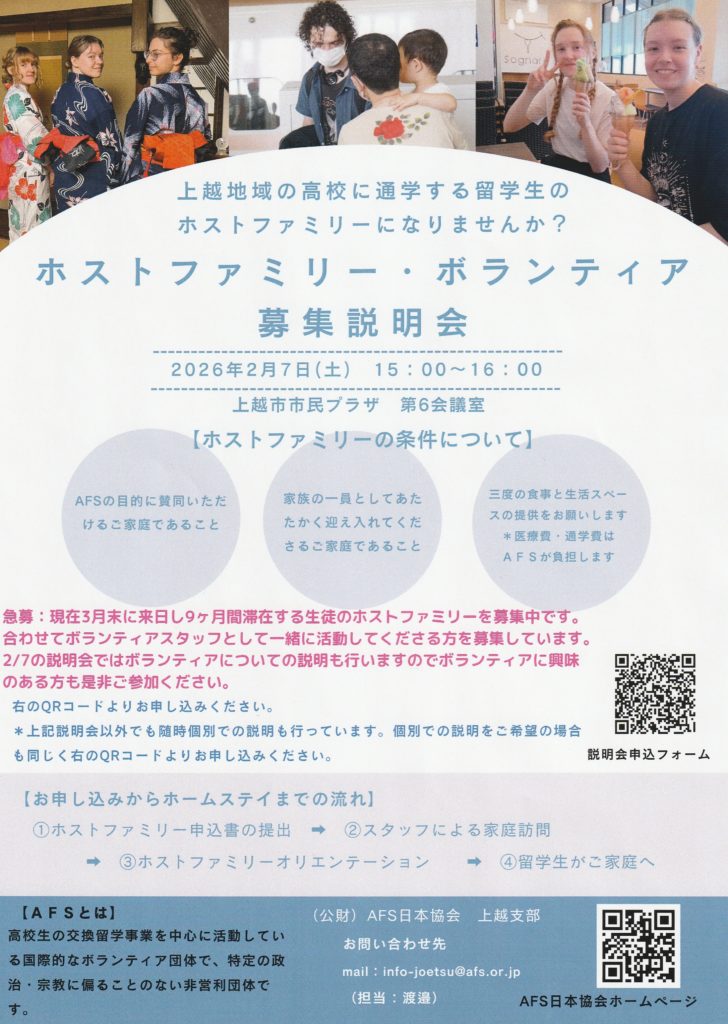 申込み・問合せ/AFS日本協会 上越支部【メール】info-joetsu@afs.or.jp