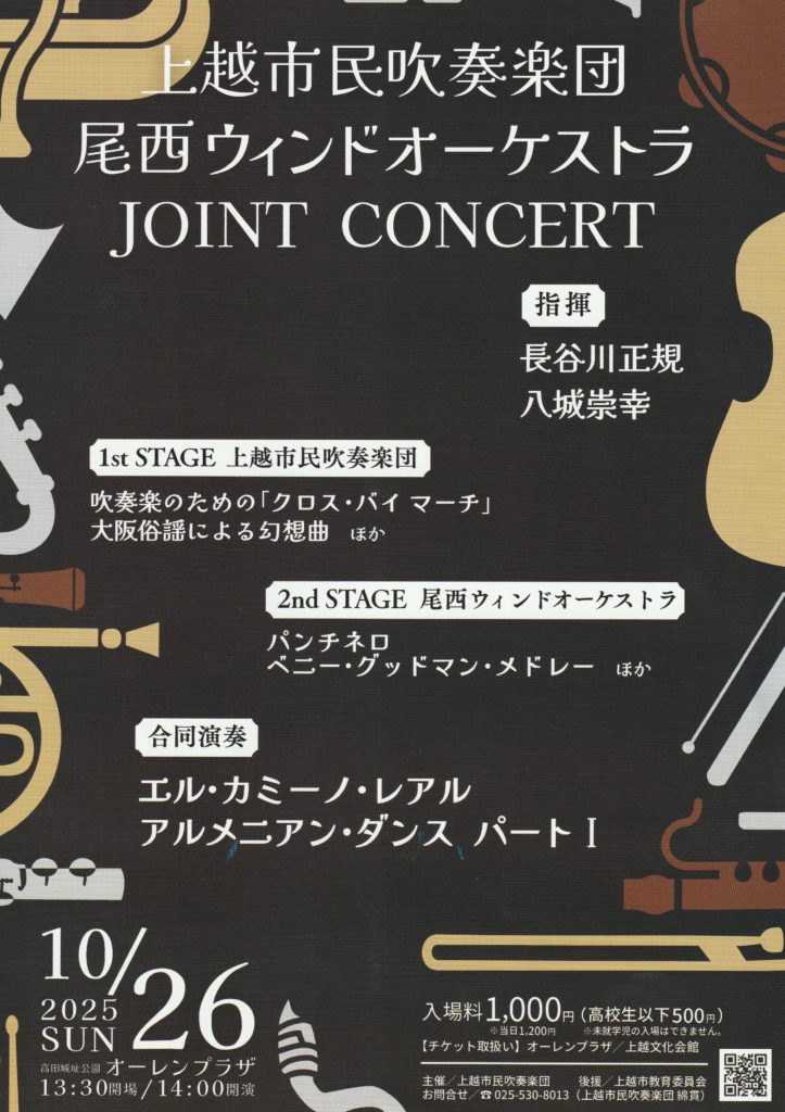 上越市民吹奏楽団 尾西ウィンドオーケストラJOINT CONCERT 10/26【更新日10/3】