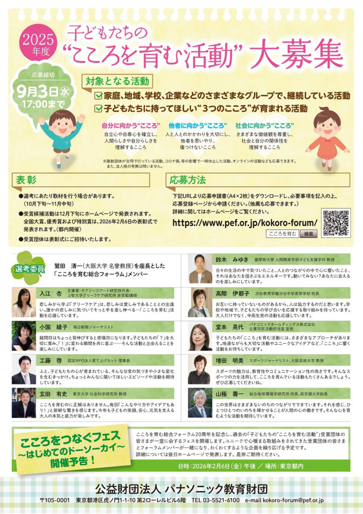 応募・問合せ/公益財団法人パナソニック教育財団【電話】03・5521・6100