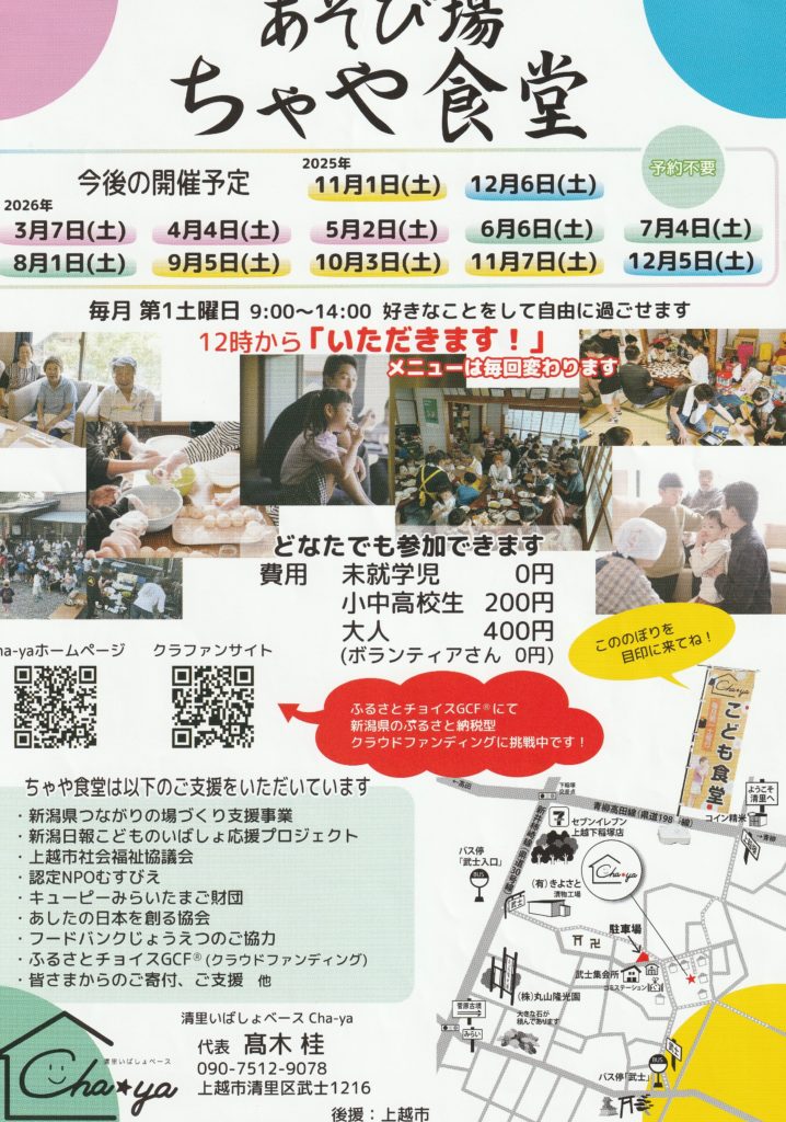 清里いばしょベースCha-ya(ちゃや)こども食堂 3/7【更新日2/25】