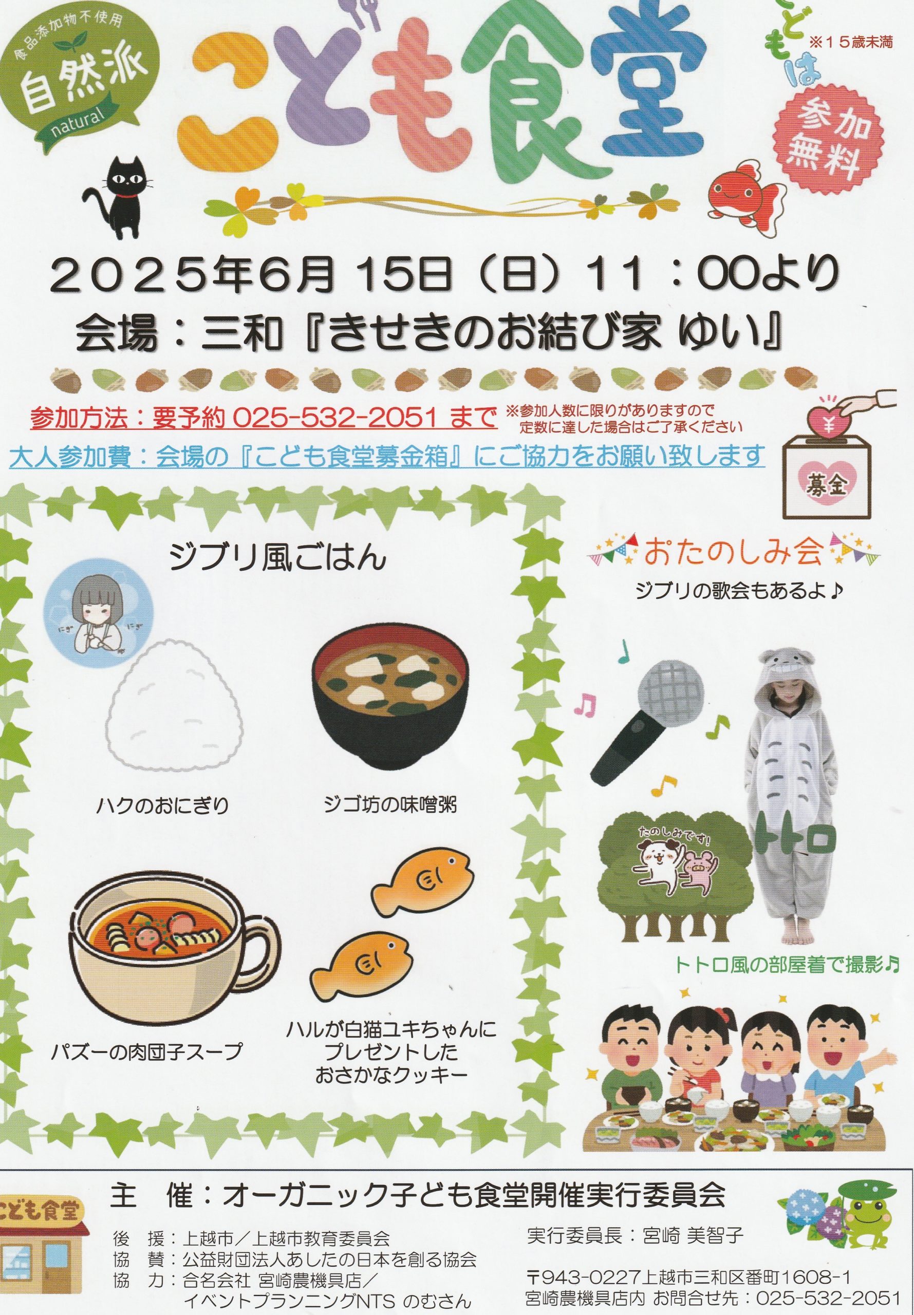 15歳未満無料のこども食堂が開催され、食品添加物を使用しない自然派の食事が提供されます。 日時/6月15日(日曜日)午前11時より場所/三和「きせきのお…続きを読む