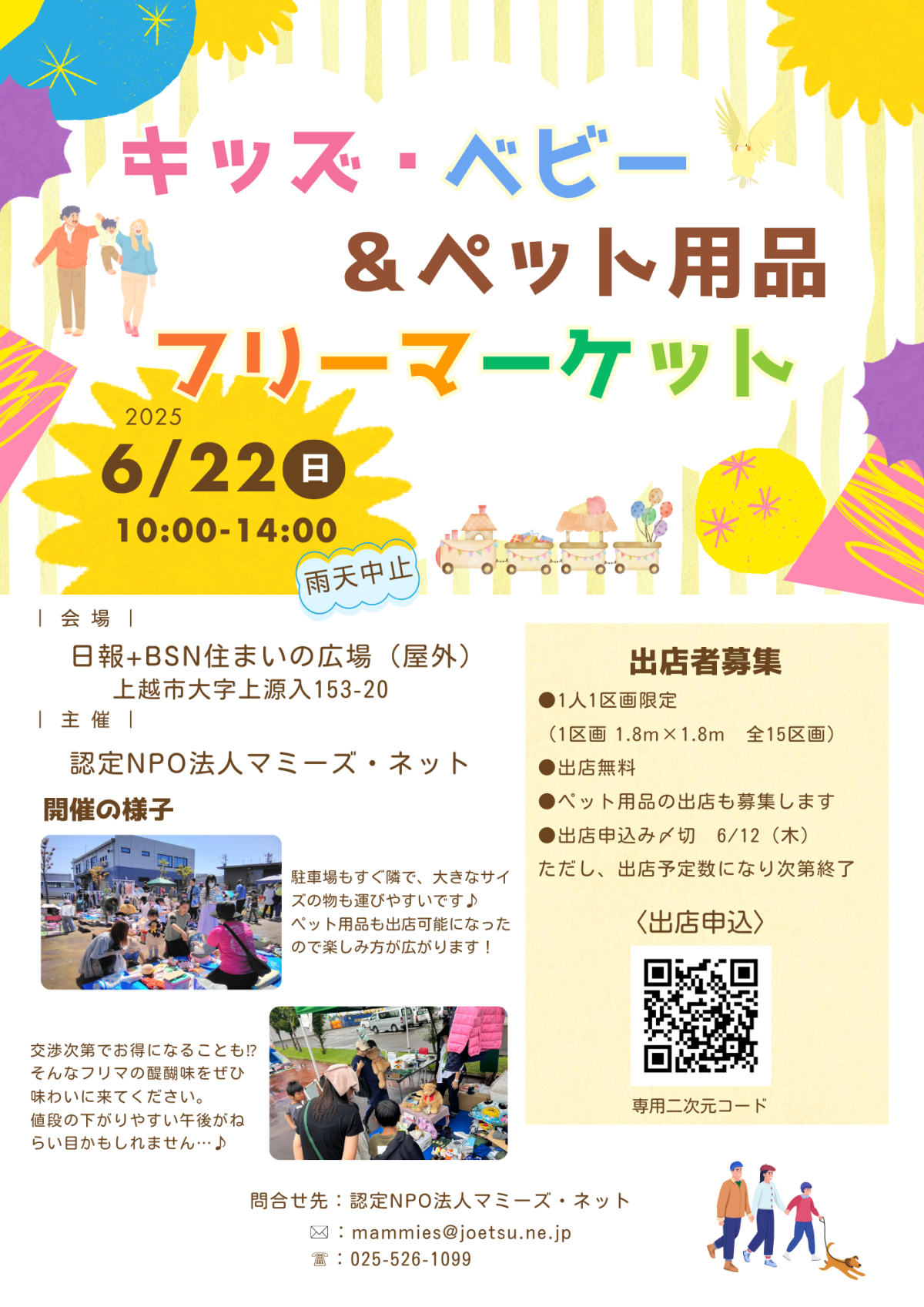 毎回大好評!毎回大好評!フリーマーケット。今回からはベビー&キッズのものに加え、ペット用品の出店も。日時/6月22日(日)10時~14時 雨天中止場所/日報+…続きを読む