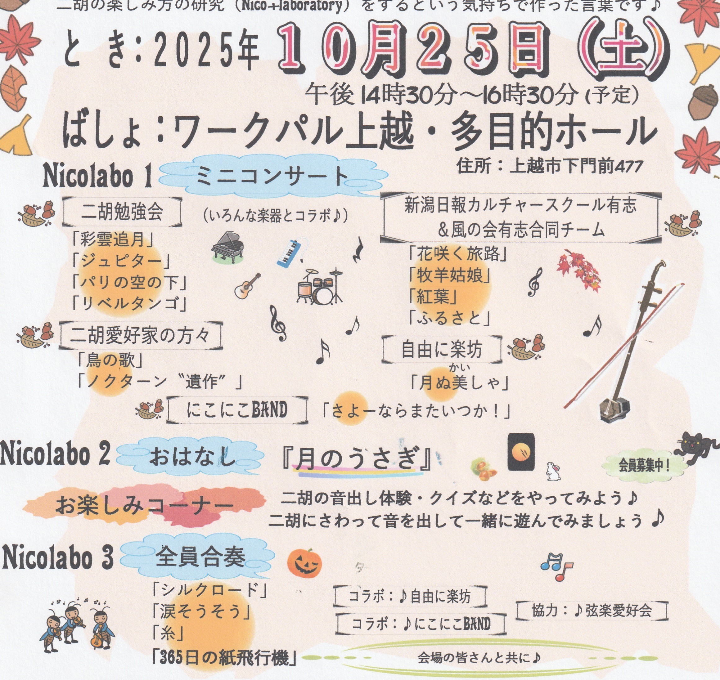 今回のテーマはNicolabo(にこらぼ)二胡と他の音楽とのコラボレーション♪二胡の楽しみ方の研究(Nico+Laboratory)をするという気持ちで作った…続きを読む