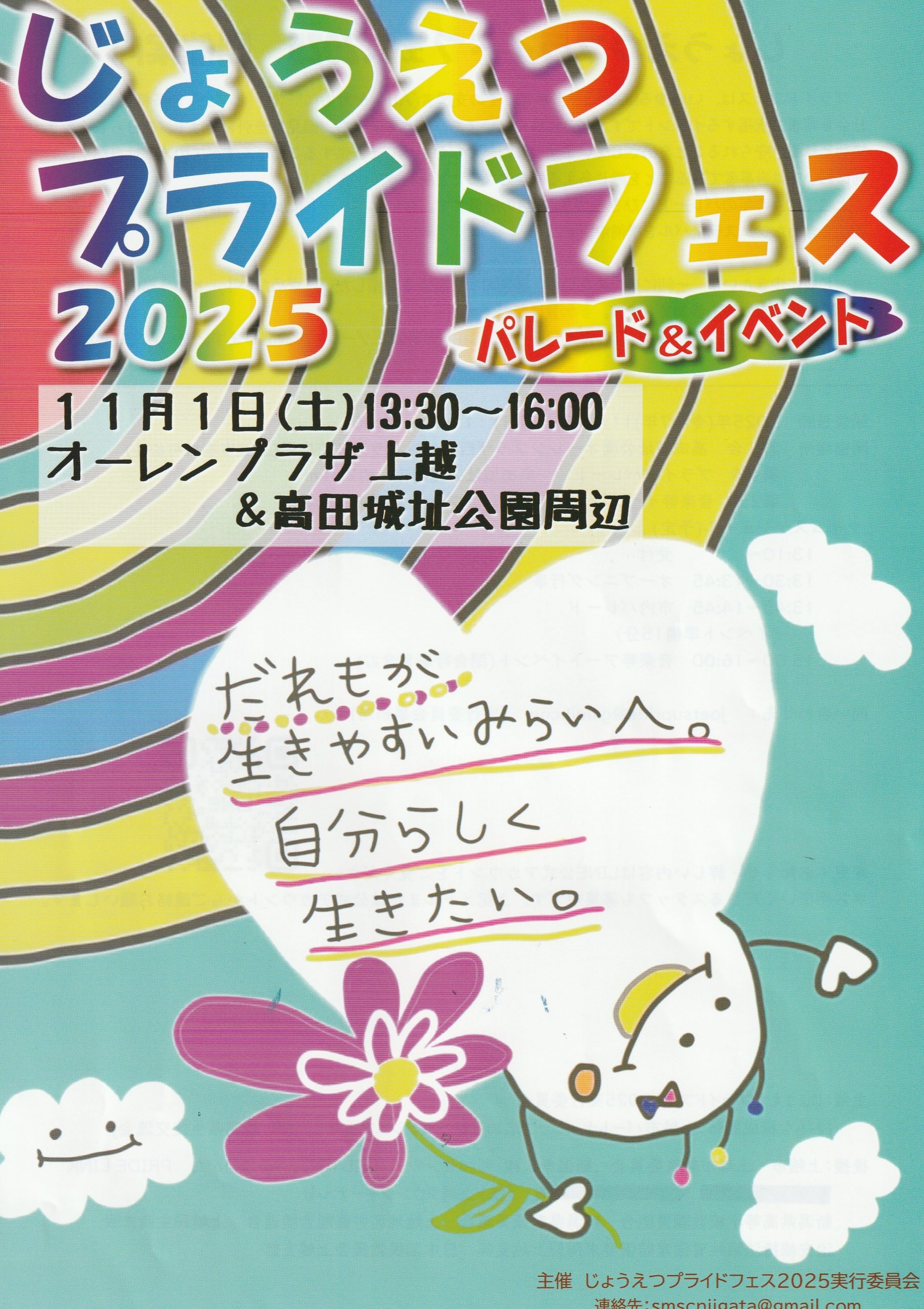 生の多様性の理解を深めるため市民パレードと音楽、アートイベントを行います。 日時/11月1日 午後1時30分~4時場所/高田城址公園オーレンプラザ西側エ…続きを読む