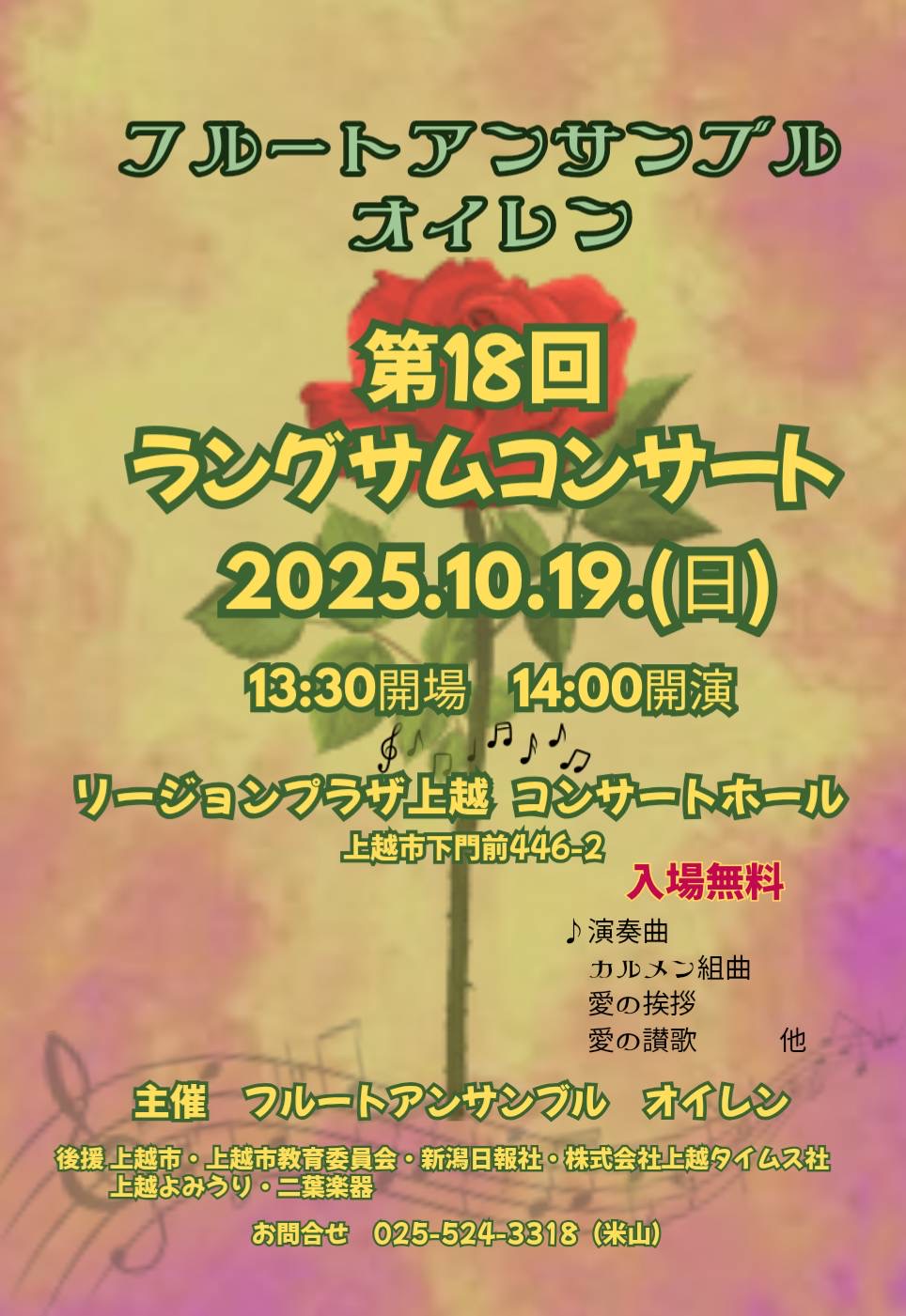 フルートアンサンブルオイレンの年に一度の定期演奏会「ラングサムコンサート」が開催されます。「ラングサム」とはドイツ語で「ゆっくりと」という意味です。5種類のフ…続きを読む
