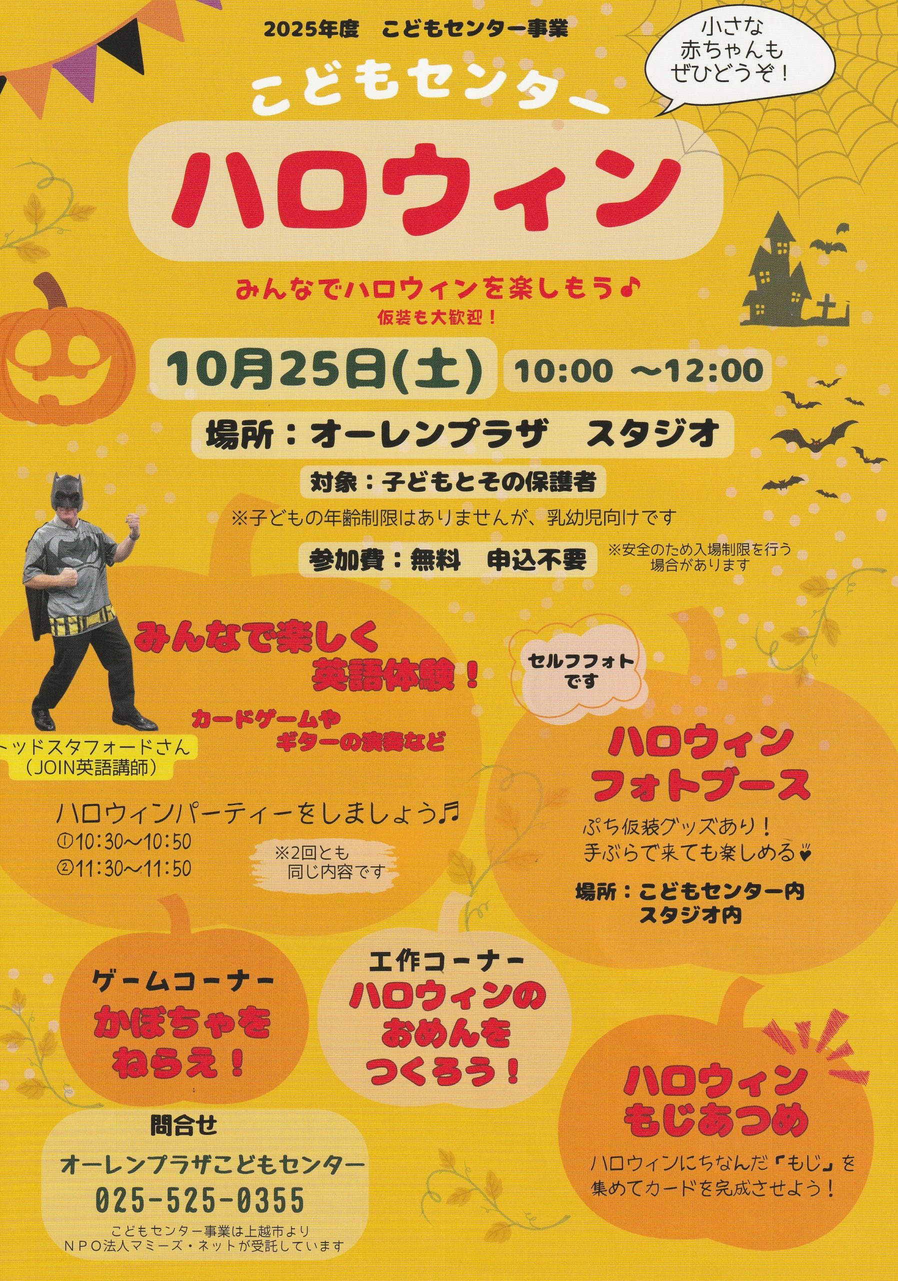 みんなでハロウィンを楽しもう仮装も大歓迎!小さな赤ちゃんもぜひどうぞ! 日時/10月25日(土)午前10時~正午場所/オーレンプラザ スタジオ対象/子ど…続きを読む
