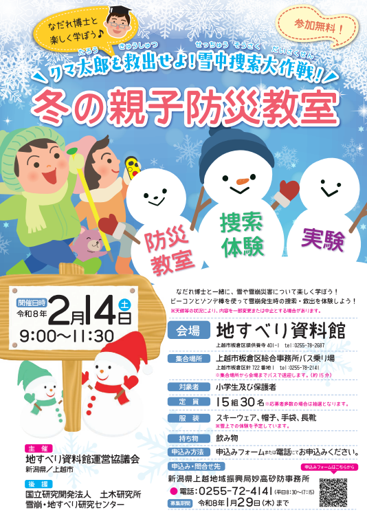 全国有数の豪雪地帯である新潟県上越地域では、スキーや登山等の冬季レジャー中に、雪崩の被害に遭う事例が発生しています。こうした現状を受けて、上越市にある防災啓発…続きを読む