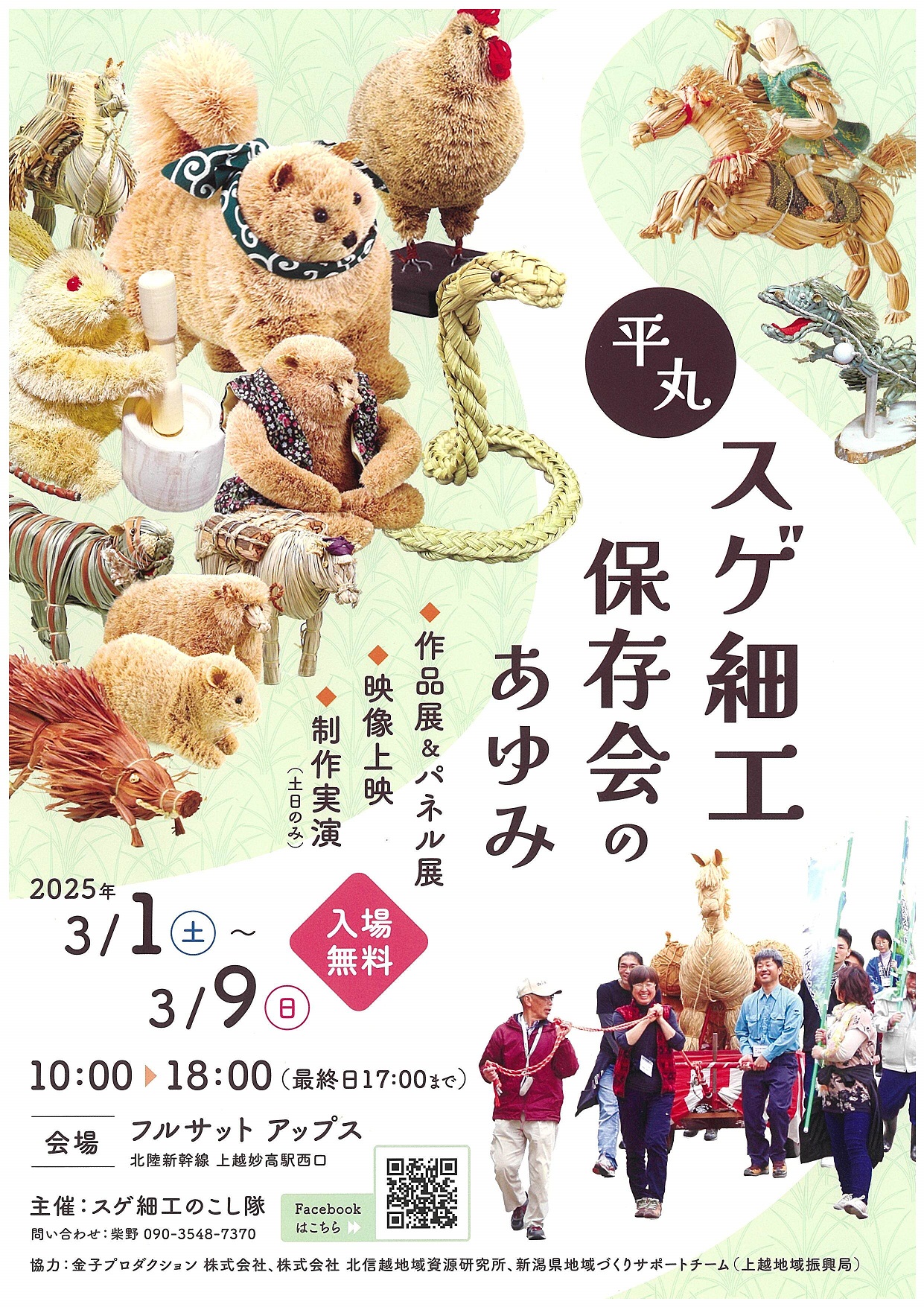 平丸のスゲ細工の昔と今が比較できる作品展示を行うほか、その歴史や製作の工程などを保存会のあゆみとともに紹介します。また、製作技術を間近でみることができる製作実…続きを読む
