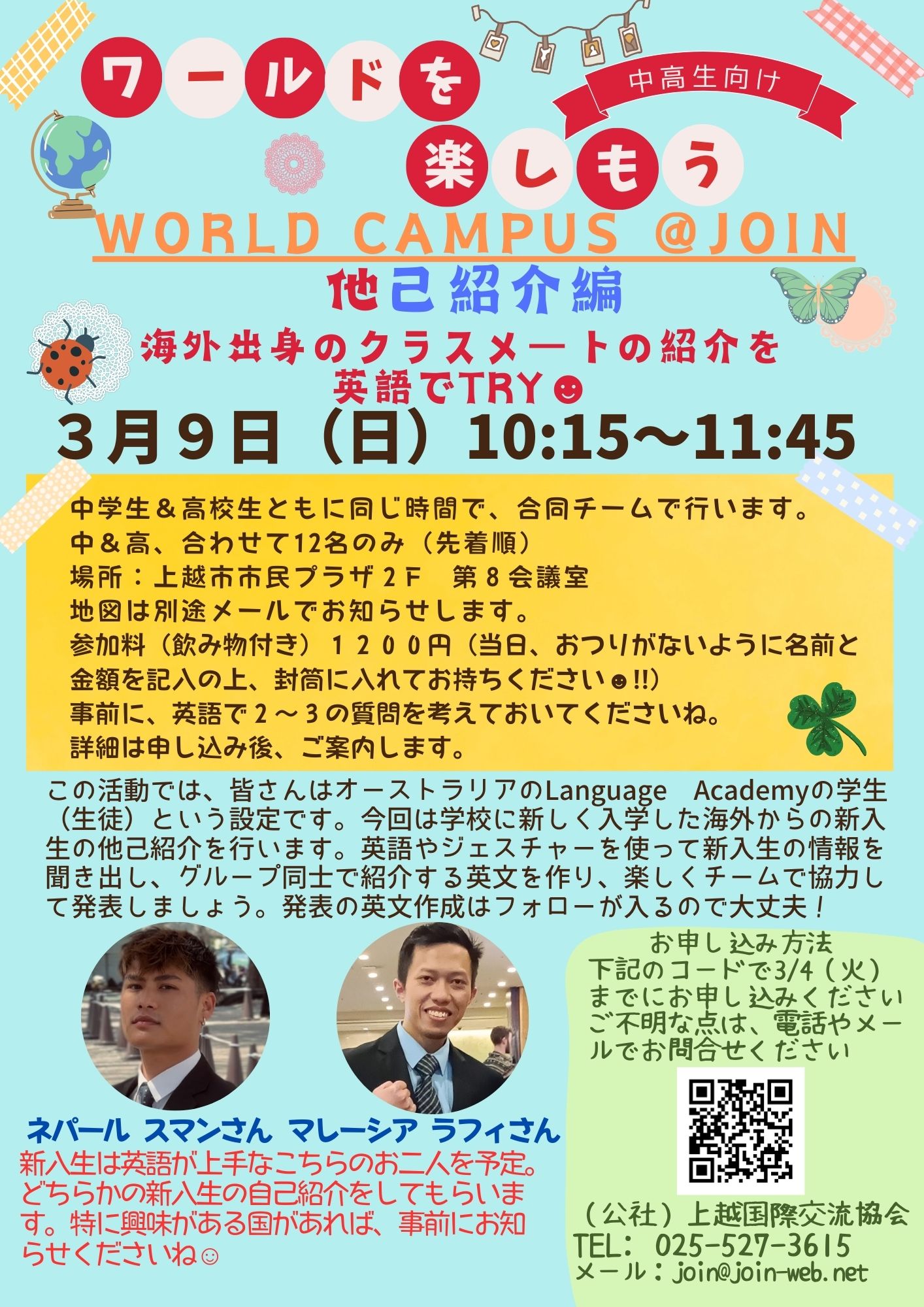 世界の人とやさしい日本語でお話しながら、いっしょに料理を作りましょう。たのしくやさしい日本語でおしゃべりしましょう。 日時/3月2日(日)午後1時~4時…続きを読む