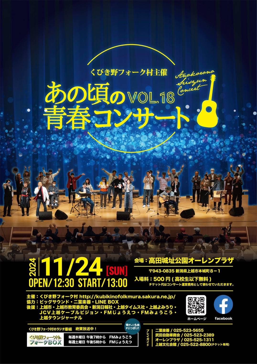 フォークソングが大好きな仲間による手作りコンサート。 日時:2024年11月24日(日)開場:12:30 開演13:00~場所:高田城址公園オーレンプラ…続きを読む