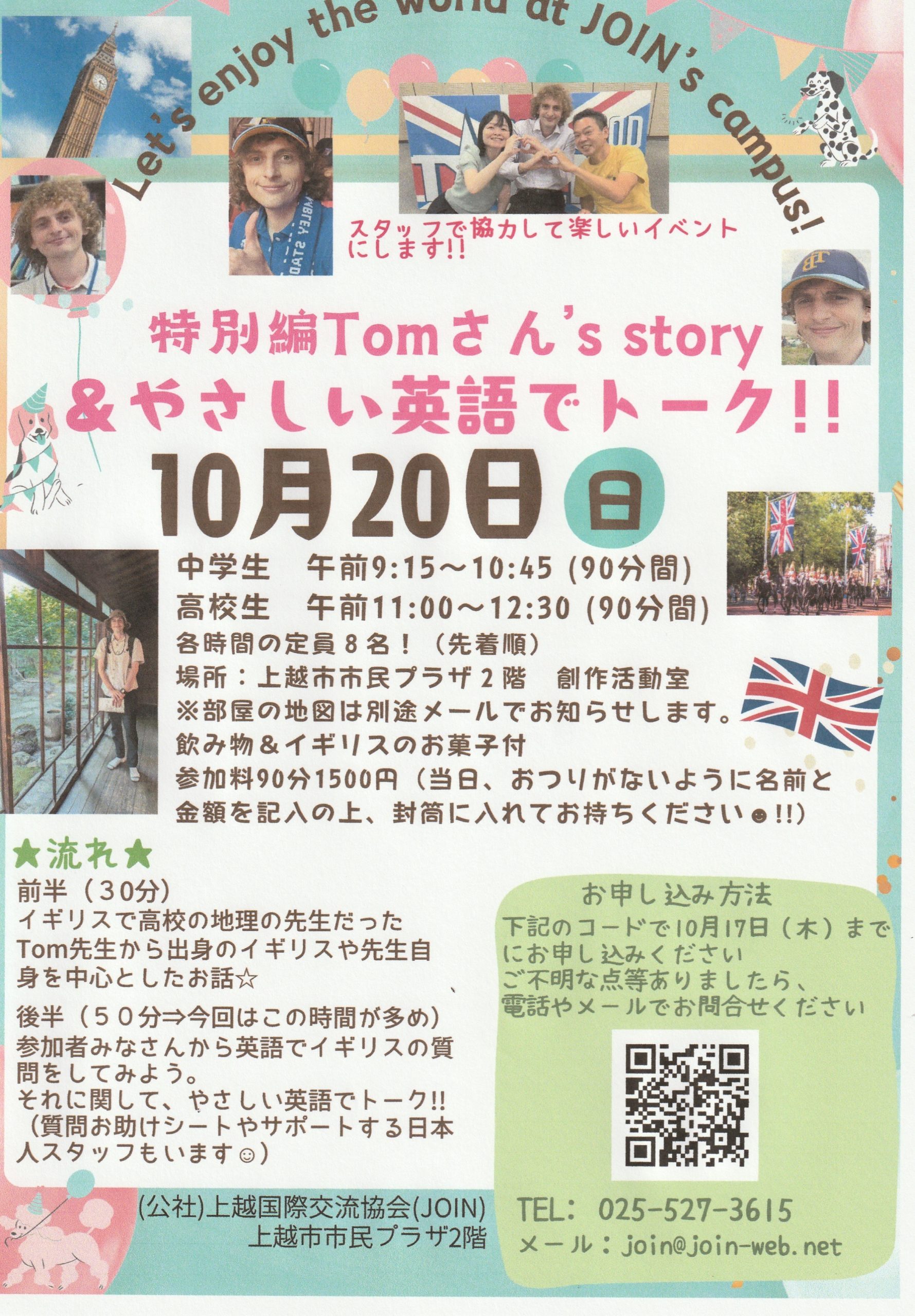イギリスで高校の先生だったTom先生と楽しくやさしい英語を使って会話も楽しみましょう。初めての方もお気軽にご参加ください。 日時/10月20日(日)※中…続きを読む
